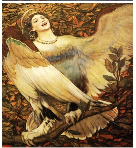 В византийских и русских средневековых легендах «чудесная птица, жительница Ирия — славянского рая. Лик у нее женский, тело — птичье, а голос сладок, как сама любовь. Услышавший пение Алконост от восторга может забыть все на свете, но зла от нее нет, в отличии от Сирина . Алконост несет яйца на краю моря, но не высиживает их, а погружает в морскую глубину. В эту пору семь дней стоит безветренная погода». «Изображается на лубочных картинах полуженщиной-полуптицей с большими разноцветными перьями и девичьей головой, осененной короной и ореолом, в который иногда помещена краткая надпись. В руках держит райские цветы или развернутый свиток с объяснительной надписью».