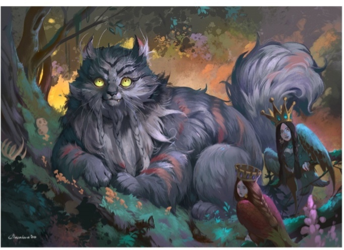 Кот Баюн — персонаж русских волшебных сказок, огромный кот-людоед, обладающий волшебным голосом. Он заговаривает и усыпляет своими сказками подошедших путников и тех из них, у кого недостаточно сил противостоять его волшбе и кто не подготовился к бою, кот-колдун безжалостно убивает. Но тот, кто сможет словить Кота, найдёт спасение от всех болезней и недугов — сказки Баюна целебны.